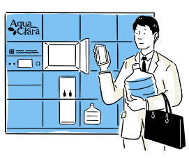 お受け取り期限内に指定したアクアポストへ行き、お受け取りパスワードを入力、またはQRコードを読み取り機にかざすとBOXが開錠します。ボトルをお受け取りく